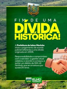 A Prefeitura de Ielmo Marinho, por meio da atual gestão, informa com transparência e responsabilidade: iniciamos o pagamento da primeira parcela de um acordo judicial que se arrastava por quase 20 anos!